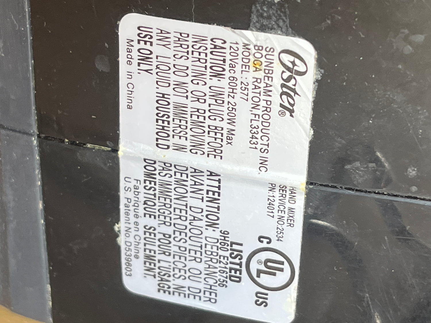 Hand mixer - Oster 6-speed 2577 with retractable power cord and two sets of whisks is backordered and will ship as soon as it is back in stock.