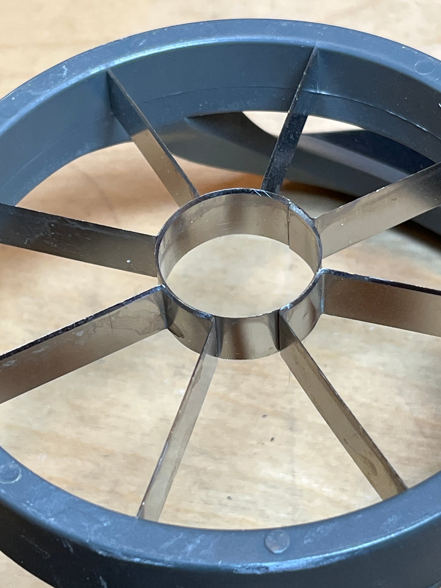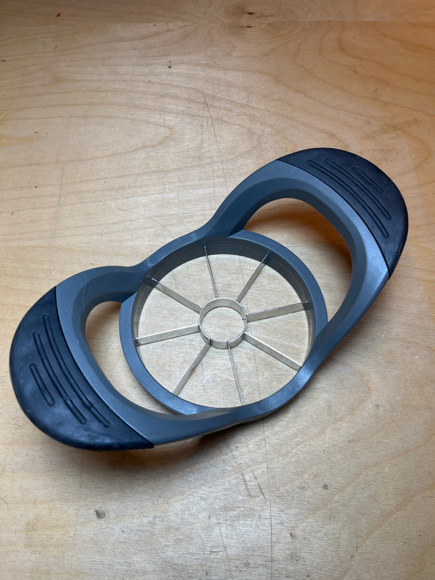 Pineapple corer from Hamilton Beach is made of stainless steel steel with grippy silicone and plastic handles.